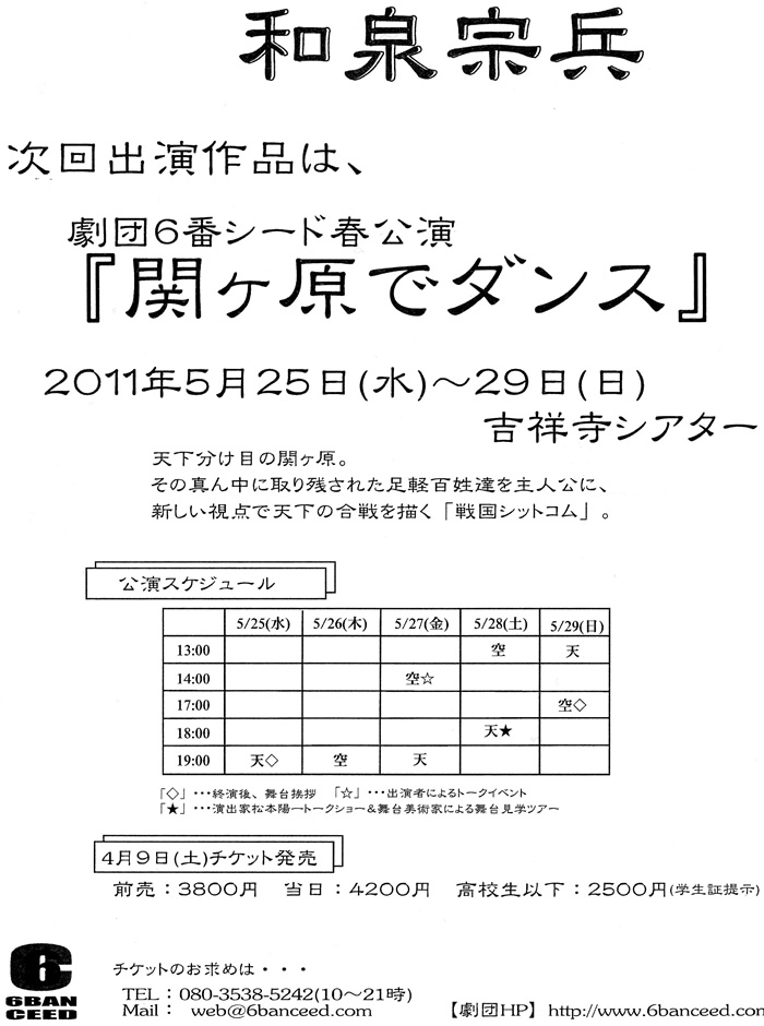 東京公演:2013年06月12日 wed.~17日 mon. @ 新宿紀伊国屋ホール